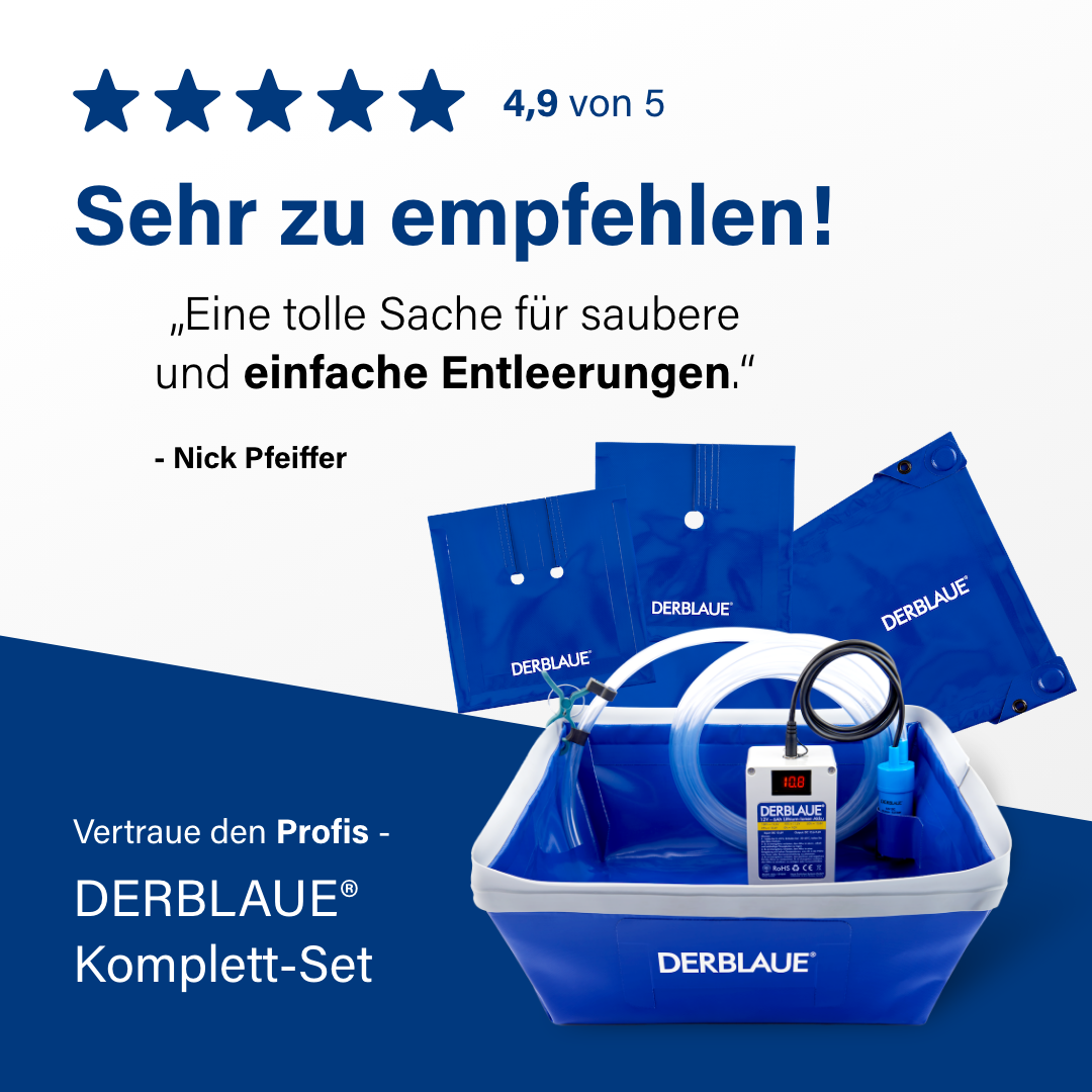 Kein aufwendiges Zurechtschneiden von Notlösungen mehr - DERBLAUE® passt immer. Großes Plus: Während das Pumpsystem läuft, sind die Hände frei für weitere Aufgaben.