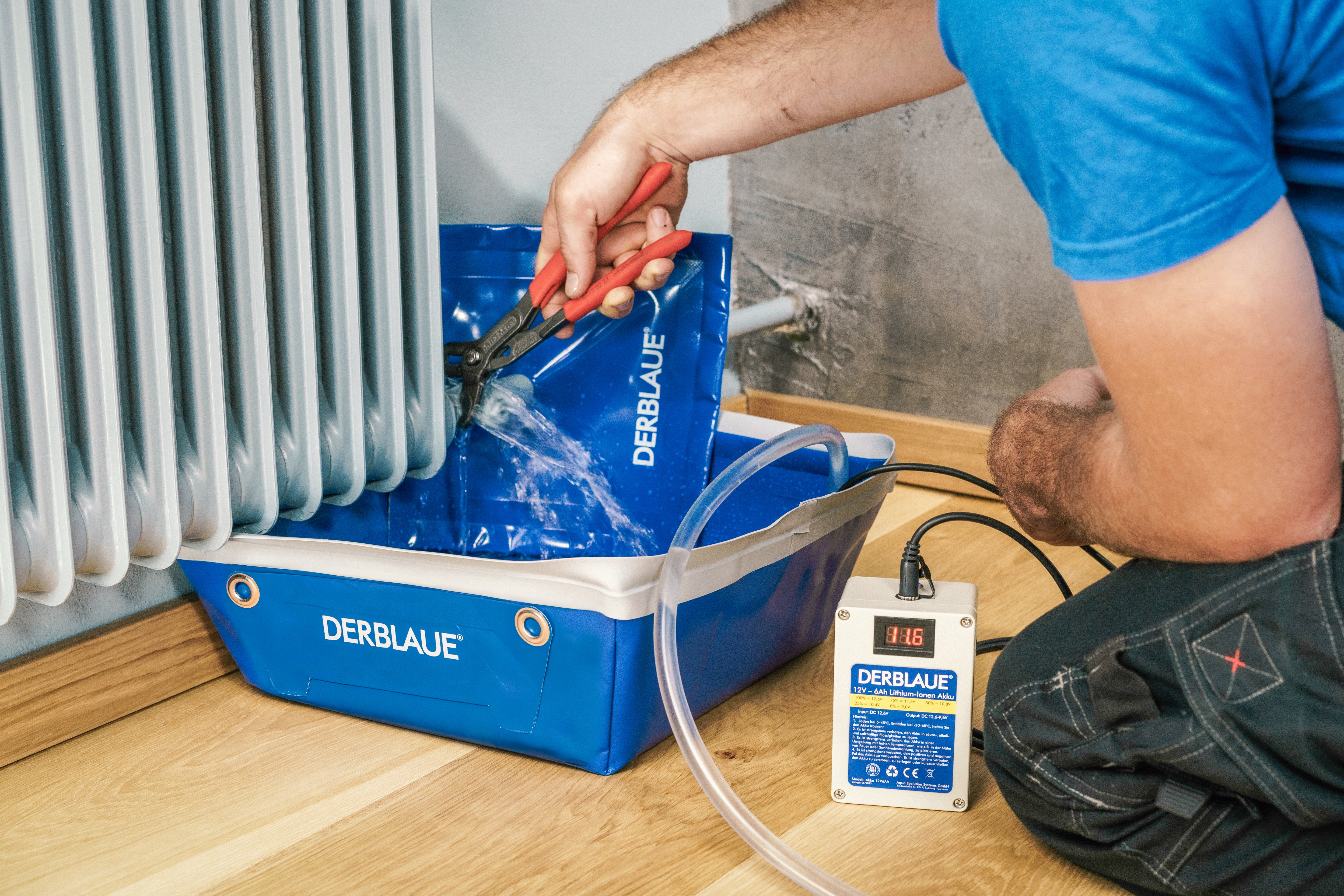 Mit DERBLAUE® sparst du dir jede Menge Zeit und Stress beim Heizkörper entleeren. Das System sorgt dafür, dass Du Flüssigkeiten sicher sammelst und gleichzeitig weiterpumpen kannst – ohne Verschütten und ohne unnötige Sauerei. So bleibt der Arbeitsbereich sauber und Du kannst Dich voll auf deine Arbeit konzentrieren.